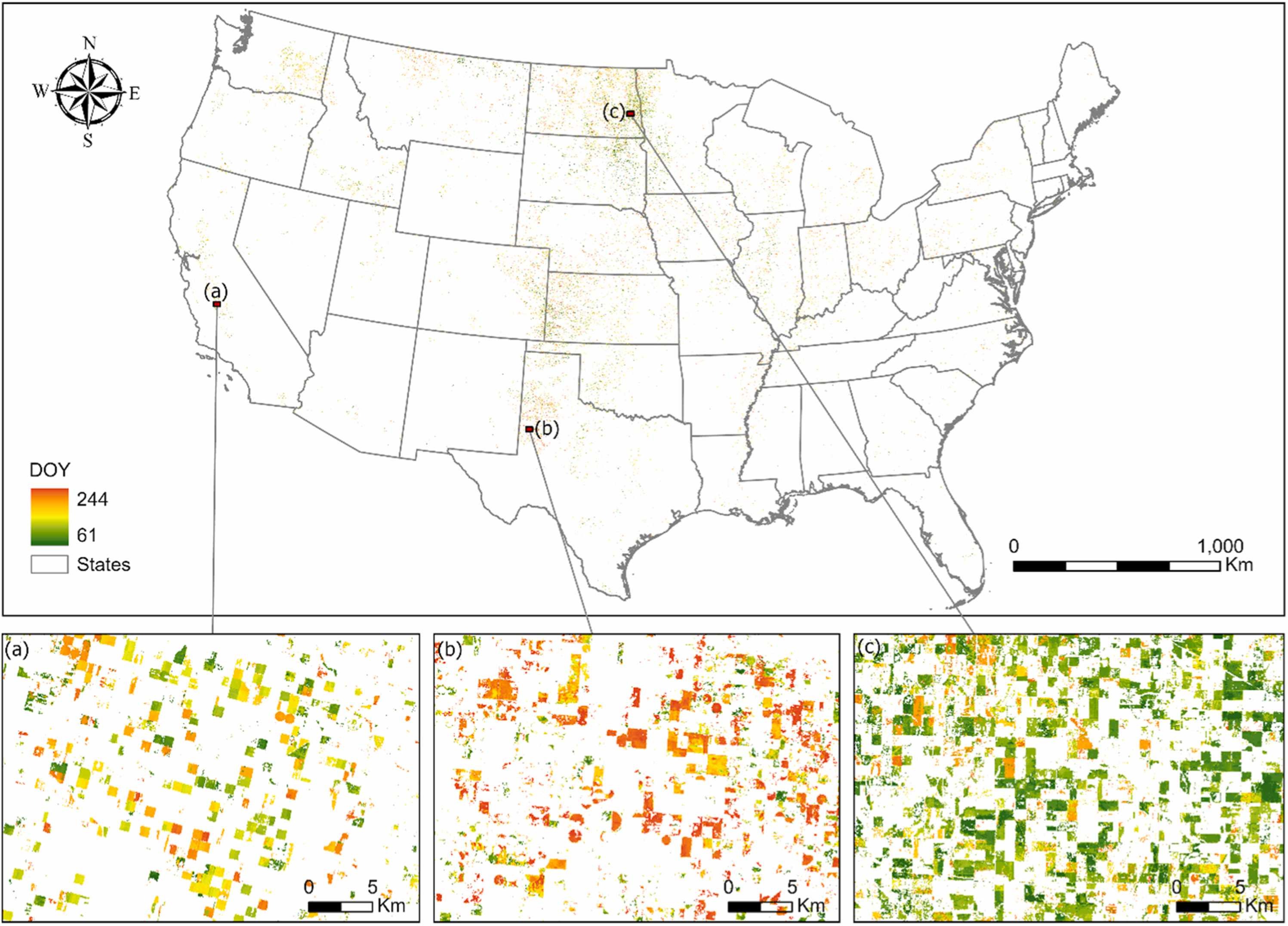Neal-time monitoring of crop water stress using Harmonizing Landsat and Sentinel-2 data. The key innovation combines change detection with machine learning for earlier crop water stress warnings at country scale.